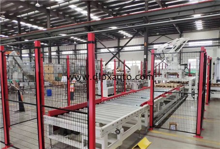 (5)自動堆垛機將灌裝好的涂料桶按組堆垛到托盤上。