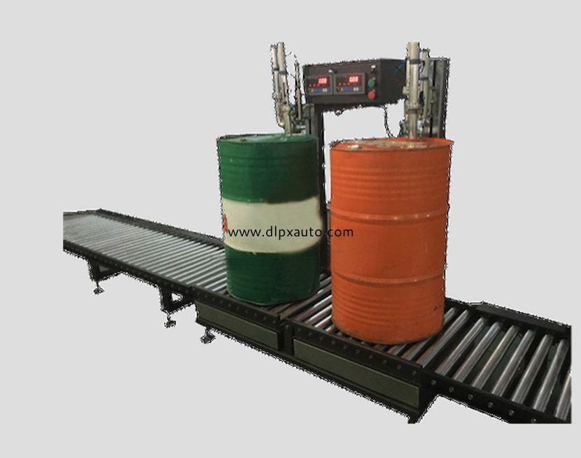 應用案例YCS-GZ型高灌稱重式灌裝機,原理是由稱重傳感器平臺在微電腦程序的控制下設定計量是高精度,高技術產品,是集機、電、儀一體化的新型機種,它改變了傳統流量計式灌裝機定量精度及無法對較粘液體的計量缺陷,是文明生產和國家明令規定淘汰杠桿秤后,融稱重與灌裝一體化的理想設備。灌裝時先去除皮重,操作者只需要將容器放入平臺,桶口對準灌裝咀,此時程序啟動,打開灌裝閥進料, 物料在注入容器時先大量快速灌裝后