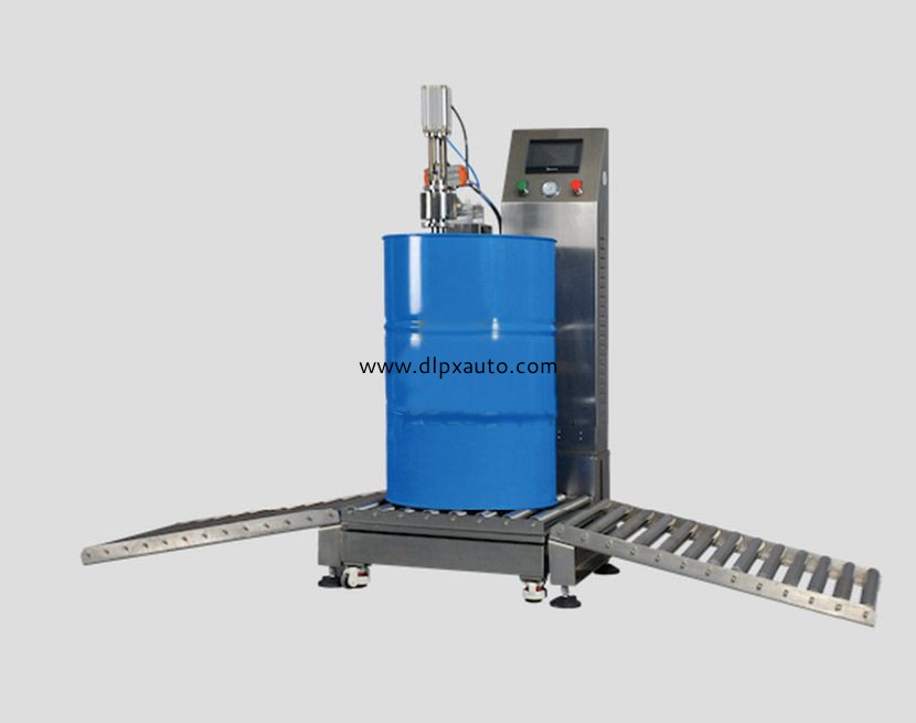 應用案例高灌稱重式灌裝機,原理是由稱重傳感器平臺在PLC的控制下設定計量.是高精度,高技術產品.是集機、電、儀一體化的新型機種,它改變了傳統流量計式灌裝機定量精度及無法對較粘液體的計量缺陷,是文明生產和國家明令規定淘汰杠桿秤后,融稱重與灌裝一體化的理想設備,灌裝時先去除皮重,操作者只需要將容器放入平臺,桶口對準灌裝咀,此時程序啟動,灌裝咀下降,打開灌裝閥進料, 物料在注入容器時先大量快速灌裝后再慢