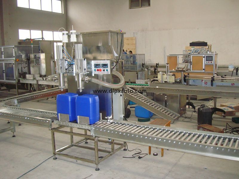 產地:上海特點:全自動,效益高,整套生產線適用范圍:石化、化工、日化, 制藥,食品,農藥等流體使用說明2.1.采用柯力傳感器,使用穩定、壽命長;2.2. PLC控制稱重,高精度;2.3.雙速灌裝(開始時快速灌裝,接近目標量時慢速灌裝)確保灌裝精度;2.4.真空回抽系統,確保不滴漏;2.5.自動插口功能,節約時間、人工;工作原理本機程序由觸摸屏操作、PLC控制通過稱重傳感器、液位傳感器、進出桶傳感器