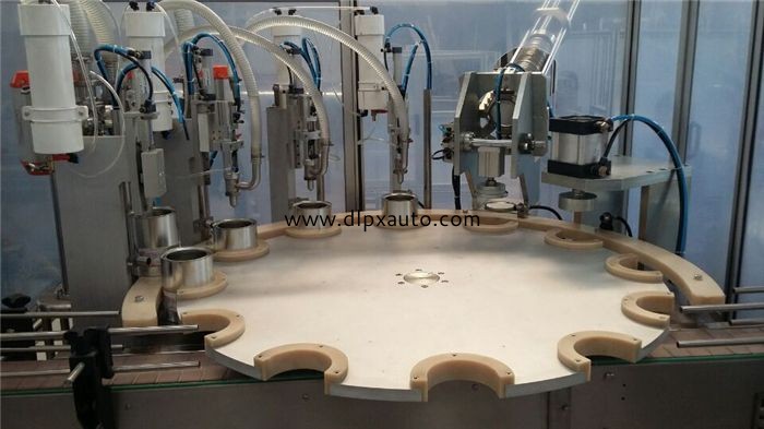 直線液體灌裝機本機為定量式自動充填機可使用在膏體、稀粘體的充填作業(yè),在設(shè)計. 上采用機械為主的直線運動方式,利用PLC邏輯控制器及各種