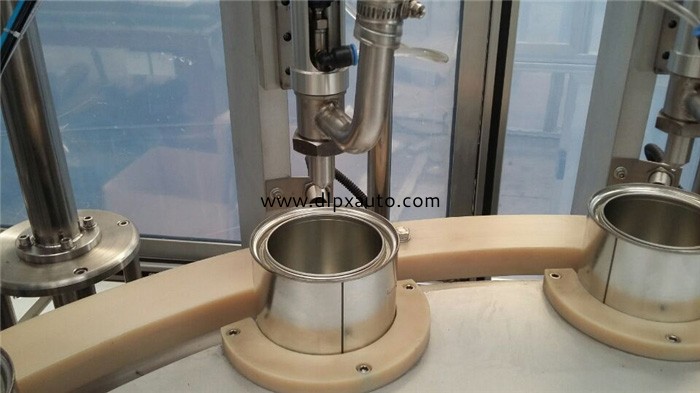 灌裝頭在容器到位后能準確下移使灌裝插入瓶口,灌裝完畢后,灌裝頭應(yīng)迅速上移,使容器能順利輸出。