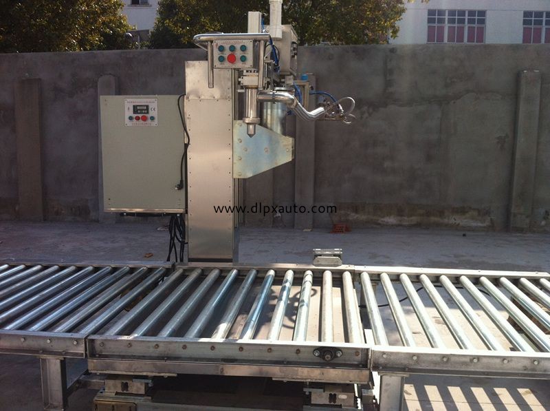 設備名稱:稱重灌裝機產地:上海特點:稱重式灌裝,計準,效益高工作原理該設備采用單頭四工位半自動形式(噸包裝是單頭單工位) , 需人工旋轉和推位操作臂尋口定位,灌裝與稱重為自動完成,之后由人工用氣動工具將桶蓋旋緊并夾好防偽蓋。稱重系統采用精度傳感器和稱重儀表,具有落差自動修正和零點自動跟蹤等多項功能(詳見稱重儀表說明)。 可根據用戶需要選擇凈重或毛重方式灌裝,灌裝系統采用粗、精灌裝方式,以確保灌裝精