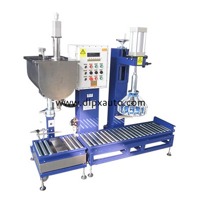 本設備是20L儲槽防爆式梅花壓蓋灌裝機(型號YCS-20L)廣泛應用于化工、糧食、農藥等與液體狀物料相關的行業,適用在聚氨酯、多元醇、聚醚、聚酯、樹脂、涂料、油漆、油墨、膠粘劑、固化劑、染料、清洗劑、機油、潤滑油、食用油、香精、溶劑、助劑、農藥及其他危險性化學產品等產品中。動作流程:當儲槽里原料低于下限位時,供料裝置自動打開給儲槽供料,當儲槽液位達到上限位時,關閉供料裝置。人工將空桶放到秤臺上,,