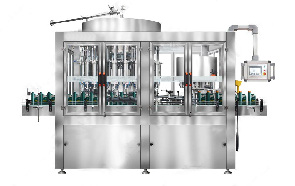 本機(jī)適用于潤(rùn)滑油、食用油、日化等民用液態(tài)產(chǎn)品。采用PLC控制,只需在觸摸屏中修改參數(shù),可對(duì)灌裝進(jìn)行整體調(diào)整,也可對(duì)單頭進(jìn)行微調(diào)。整個(gè)灌裝過(guò)程與機(jī)、電、光、氣的有效結(jié)合。集上蓋、理蓋、檢蓋、封蓋、效果檢測(cè)于一體、采用抓蓋/吸蓋定位不同方式進(jìn)行封蓋。在主機(jī)每處機(jī)械轉(zhuǎn)動(dòng)關(guān)鍵部位采用了機(jī)電- -體化保護(hù)裝置,做到無(wú)瓶不灌裝、缺瓶堵瓶主機(jī)會(huì)自動(dòng)停機(jī)報(bào)警。生產(chǎn)速度變頻可調(diào),利于配裝生產(chǎn)線,能夠滿足客戶生產(chǎn)需求