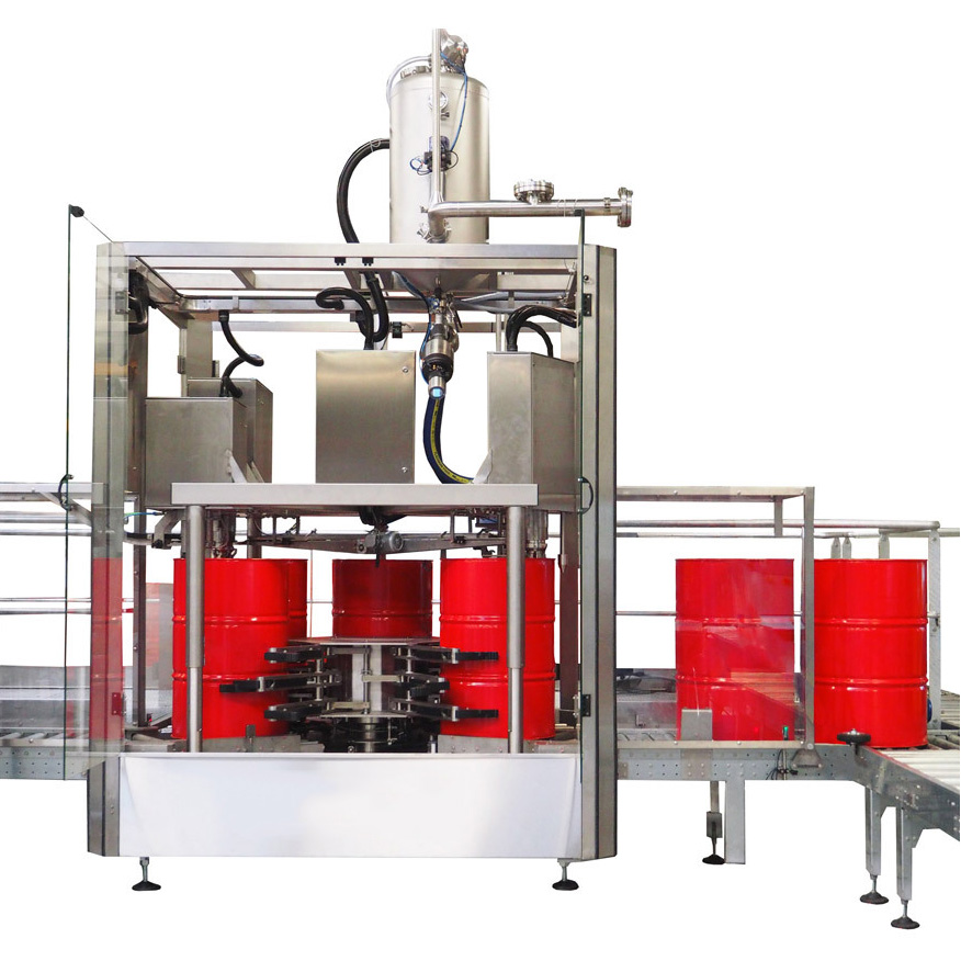 產(chǎn)品描述:轉(zhuǎn)盤式灌裝封蓋機 :高速灌裝機– 在每個工位上同時執(zhí)行自動操作:去皮、灌裝、塞子、壓接– 快速格式轉(zhuǎn)換(Click&Play 工具系統(tǒng))在從一個站到另一個站的轉(zhuǎn)移過程中精確定位鼓(由夾具固定到位。)投資回報快(無讓路/高產(chǎn)能)容器:灌裝機/300KG行業(yè):精細化工規(guī)范:ATEX / 防爆設(shè)計節(jié)奏:高達 120 桶/小時容量:桶從 60L 到 220LCAPS:金屬塞/塑料塞/金屬