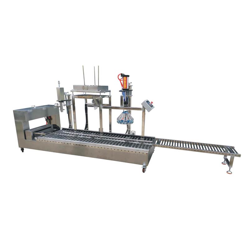 1千克化工液體灌裝機是用于化工行業(yè)中精確灌裝液體或粉末材料的機械設(shè)備,它具備一系列獨特的設(shè)計特點和功能,以滿足化工產(chǎn)品灌裝的高精度、高效率和高安全性的要求。 液體灌裝機采用德國原裝PLC控制,確保了系統(tǒng)的穩(wěn)定性和可靠性。 使用進口的電、氣動控制元件,進一步保證了系統(tǒng)的性能穩(wěn)定性。 液體灌裝機的光電檢測系統(tǒng)采用德國產(chǎn)品,保證了質(zhì)量的可靠性。 液體灌裝機設(shè)計了防滴裝置,可以有效防止生產(chǎn)過程中的滴漏現(xiàn)象。 液體灌裝機采用步進式供送,主段輸送采用變頻控制,后序操作如壓蓋、噴碼等采用雙錯位配接,確保整條生產(chǎn)線的工作準確順暢。 液體灌裝機支持高低雙速灌裝,既保證了灌裝精度,又大幅提高了生產(chǎn)效率。 液體灌裝機具有良好的適應(yīng)性,能夠適應(yīng)多種不同產(chǎn)品的灌裝需要,調(diào)節(jié)方便。 液體灌裝機的人性化操控系統(tǒng)具備智能化保護功能,一旦出現(xiàn)故障會報警并顯示故障原因,有助于維持生產(chǎn)流程的順暢。 液體灌裝機還配備了電動調(diào)節(jié)容量系統(tǒng),具有實時數(shù)據(jù)跟蹤功能,便于更換品種和調(diào)整灌裝量。 液體灌裝機的主要功能包括: 灌裝: 自動進行灌裝,灌裝速度快且精度高。 自動對口: 能夠自動對準灌裝口,提高灌裝效率和準確性。 防爆等級: 部分液體灌裝機設(shè)計有防爆等級,適用于特殊的工作環(huán)境。 適用范圍: 廣泛應(yīng)用于石油、化工、樹脂、油脂、食品等行業(yè)。 液體灌裝機的技術(shù)參數(shù)主要包括: 灌裝重量: 1-10Kg 給料方式: 水平螺桿給料方式 計量方式: 稱重式 充填精度: w±0.2% 充填速度: 1-2桶/min 適合容器: 方形匣缽?fù)庑纬叽纾▽挾?20-330mm/高度60-150mm) 電源: 三相380V/220V50-60HZ 整機功率: 3.4KW(不含除塵設(shè)備) 氣壓: 0.6-0.8Mpa 耗氣量: 1m3/h 整機重量: 350Kg 整機體積: 1250mm正面X1170mm側(cè)面X1700mm高度。 1千克化工液體灌裝機是一款集成了現(xiàn)代化科技與先進制造工藝于一身的樹脂灌裝機,它不僅能夠提供高精度的灌裝,還能確保生產(chǎn)流程的順暢和高效,是化工行業(yè)中不可或缺的自動化設(shè)備。概述
