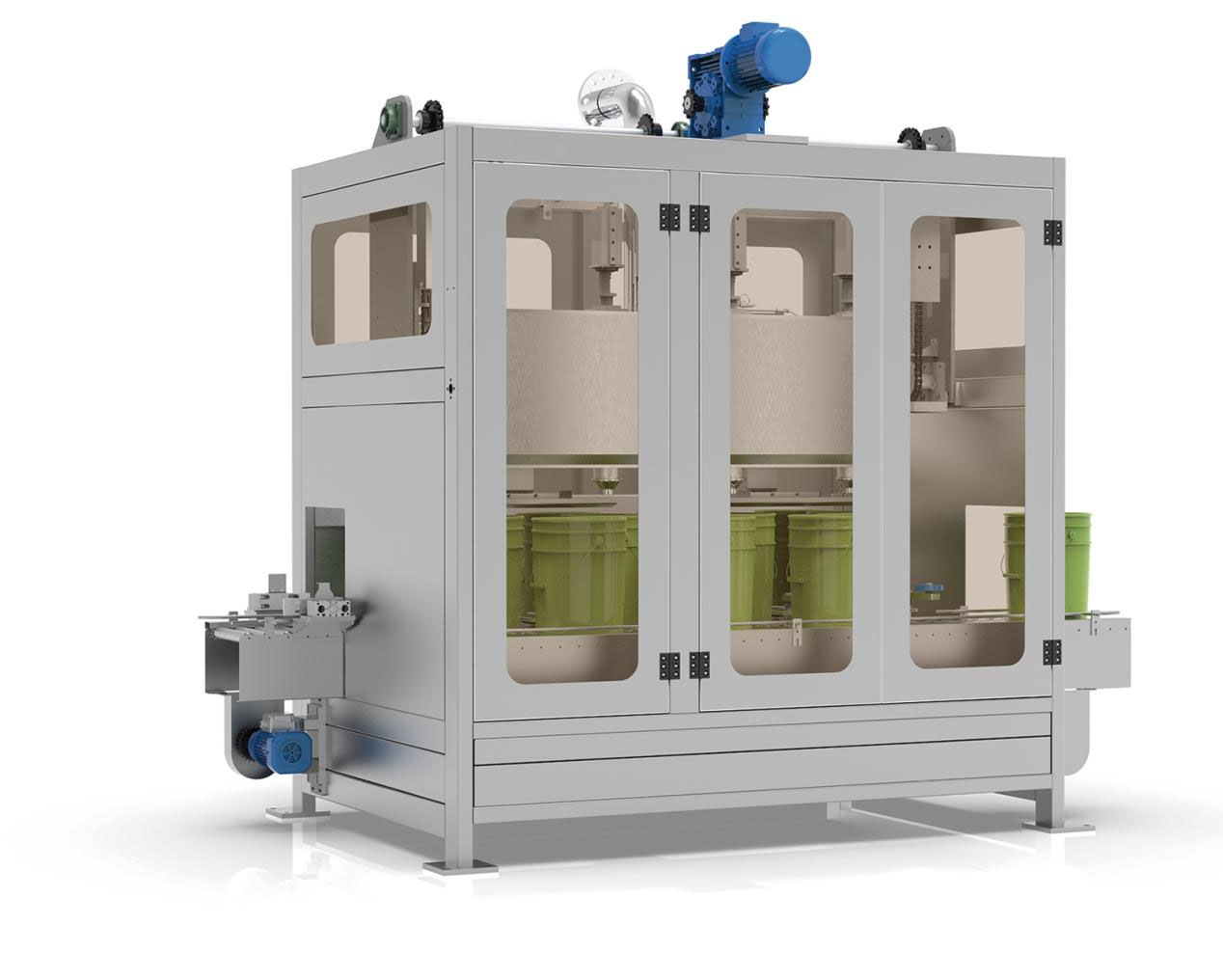 20L 自動(dòng)稱重式液體灌裝機(jī) 設(shè)備概述:灌裝主機(jī)采用粗精兩步灌裝,保證灌裝速度和精度。灌裝結(jié)束后,接料盤伸出,防止灌裝頭滴落液體污染包裝物和輸送線體。采用觸摸屏實(shí)現(xiàn)人機(jī)對(duì)話,自動(dòng)診斷功能,操作參數(shù)設(shè)定以及累計(jì)班產(chǎn)、工作狀