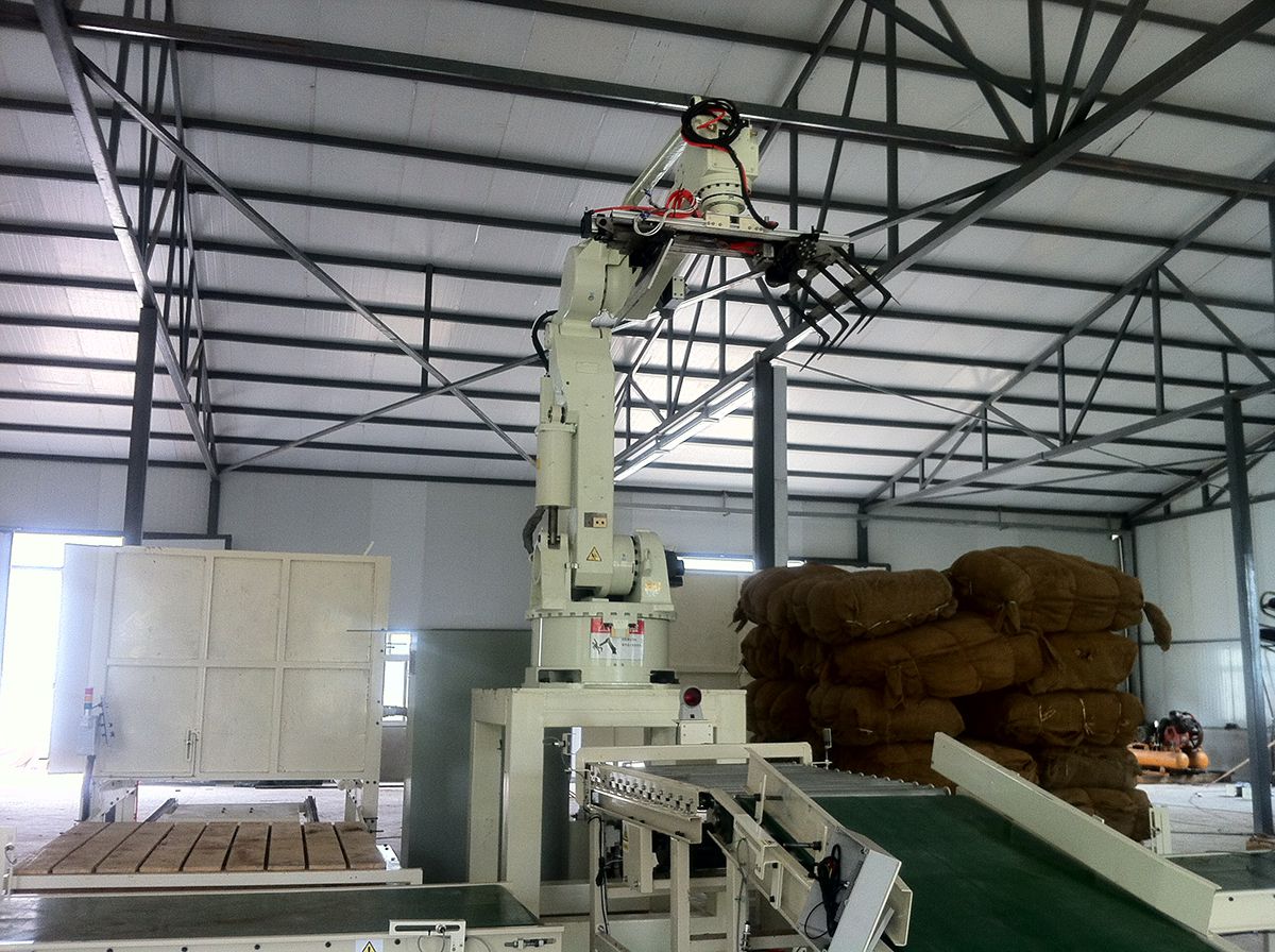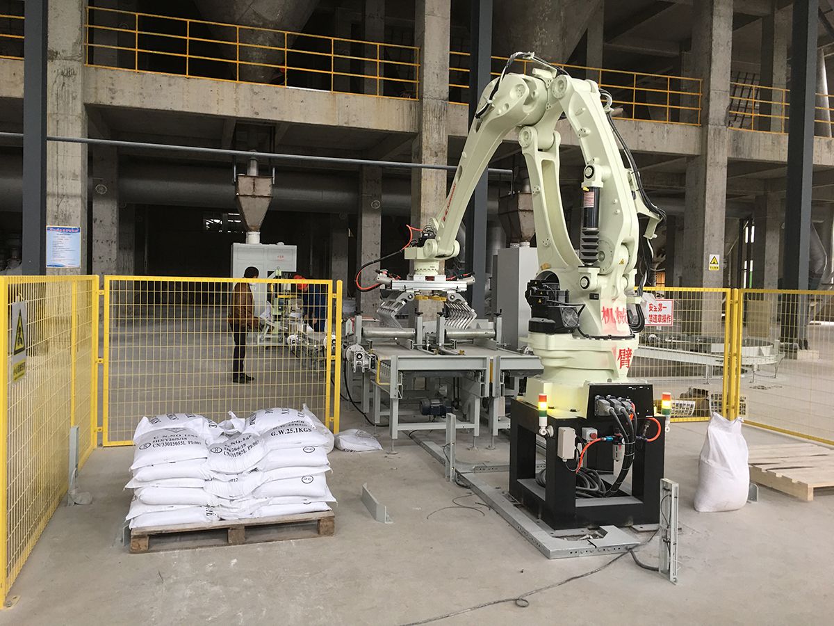 碼垛機器人是由全伺服控制的碼垛機,所有動作均由內部伺服控制器來控制完成,無需由光電及位置傳感器發出信號,杜絕了粉塵及人為對碼垛設備的影響。機械手碼垛機堆碼具有體積小、靈活性高、可靠性高 、精度高(可達毫米級)等優點。